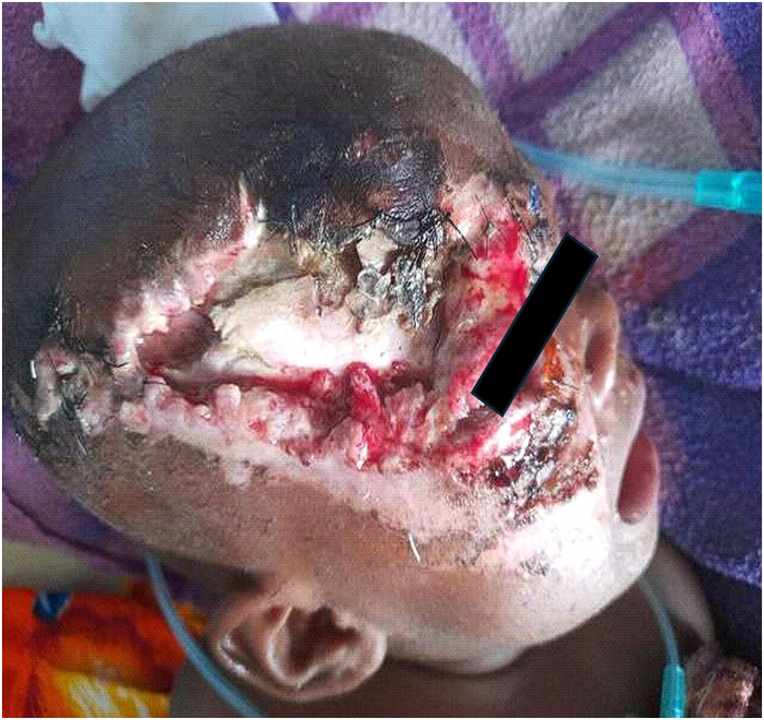 Fig. 2. Craniofacial laceration with post-traumatic frontal bone fracture.